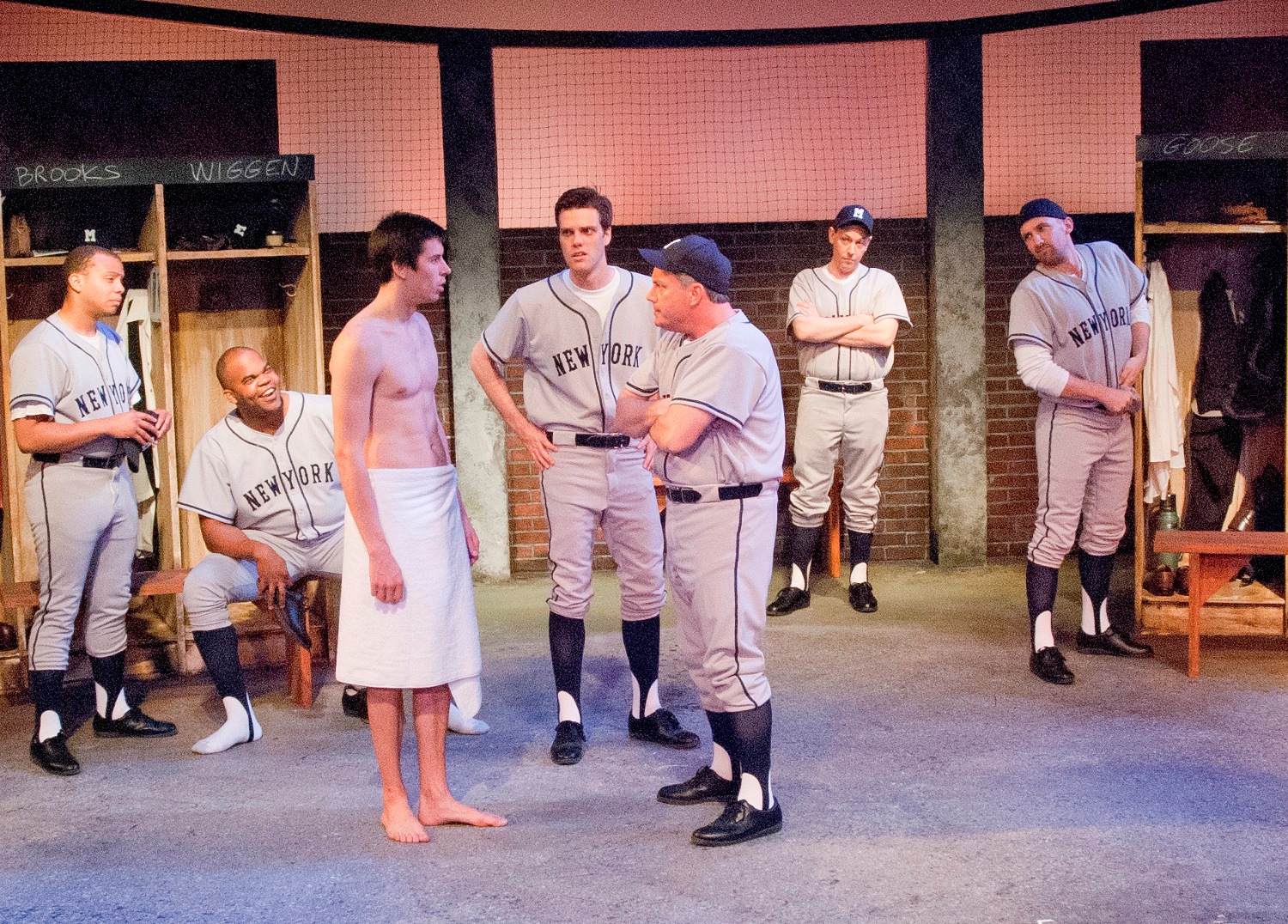This is a very tight cast of actors, many who I have not seen on a stage in the area before, but most of whom I expect to see on many more stages in many more productions in the future.The cast includes, Nicholas Bailey, Carthy Dixon,Rudy Galvan, Jason Love ( in a series of roles from translator for the Latino player to a hotel doctor), Jonathan Nichols, Jen Short, Mario Solis, Jeff Taylor, Dan Toot, Joshua J. Volkers, Antoine Pierre Whitfiled,Kristen Williams ( who also takes on three roles) and the incredible Tim Walsh as “Dutch” Schnell, team manager. While the theme of this story is baseball, don’t let that turn you off. It is about people caring for people and relationships and a strong bond that can come between two people, from different walks of life, who by sheer coincidence and chance become the best of friends, loyal to each other through thick and thin. I would say that even if you hate baseball and sports, you will love the story that is told so well in this solid production.
