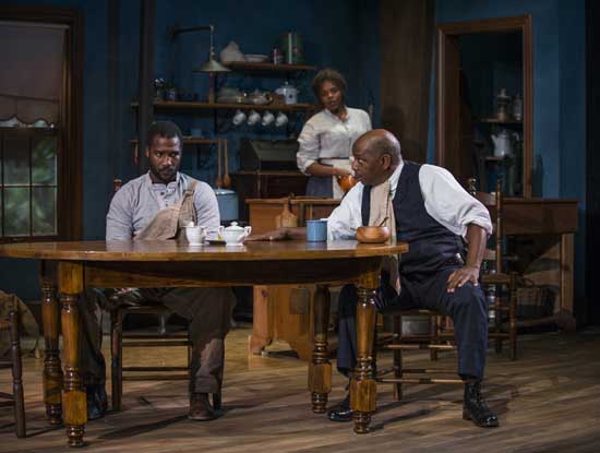 Solly Two Kings (Alfred H. Wilson) is a good friend to Eli who happens to be sweet on Aunt Ester. He was a slave who escaped and got all the way to Canada but just couldn’t stay there. When he returned to America, he became a conductor on the underground railroad. For me, the scene when Solly and Eli shared a flask with Citizen and reminisced about those times, became one of the most powerful moments in the play.