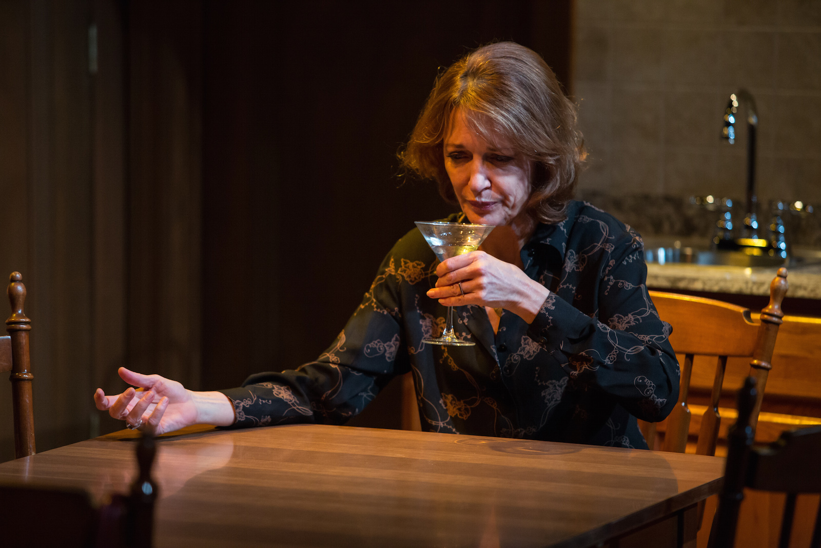 Off at school, Albert, a sort of loner who wants nothing to do with all these swell-headed rich kids, however, he meets a girl, Lucy (the adorable Tyler Meredith) who it seems has selected him as her “boyfriend”. They develop a relationship that is very special, but neither has opened up completely about their family. Thanksgiving break brings Lucy home to her mother, Margaret (played to perfection by another Chicago favorite, Shannon Cochran) who relies on drink and cigarettes to make it through her days. During this scene we learn a great deal about Lucy’s parents, their relationship and how she came to be who she is.