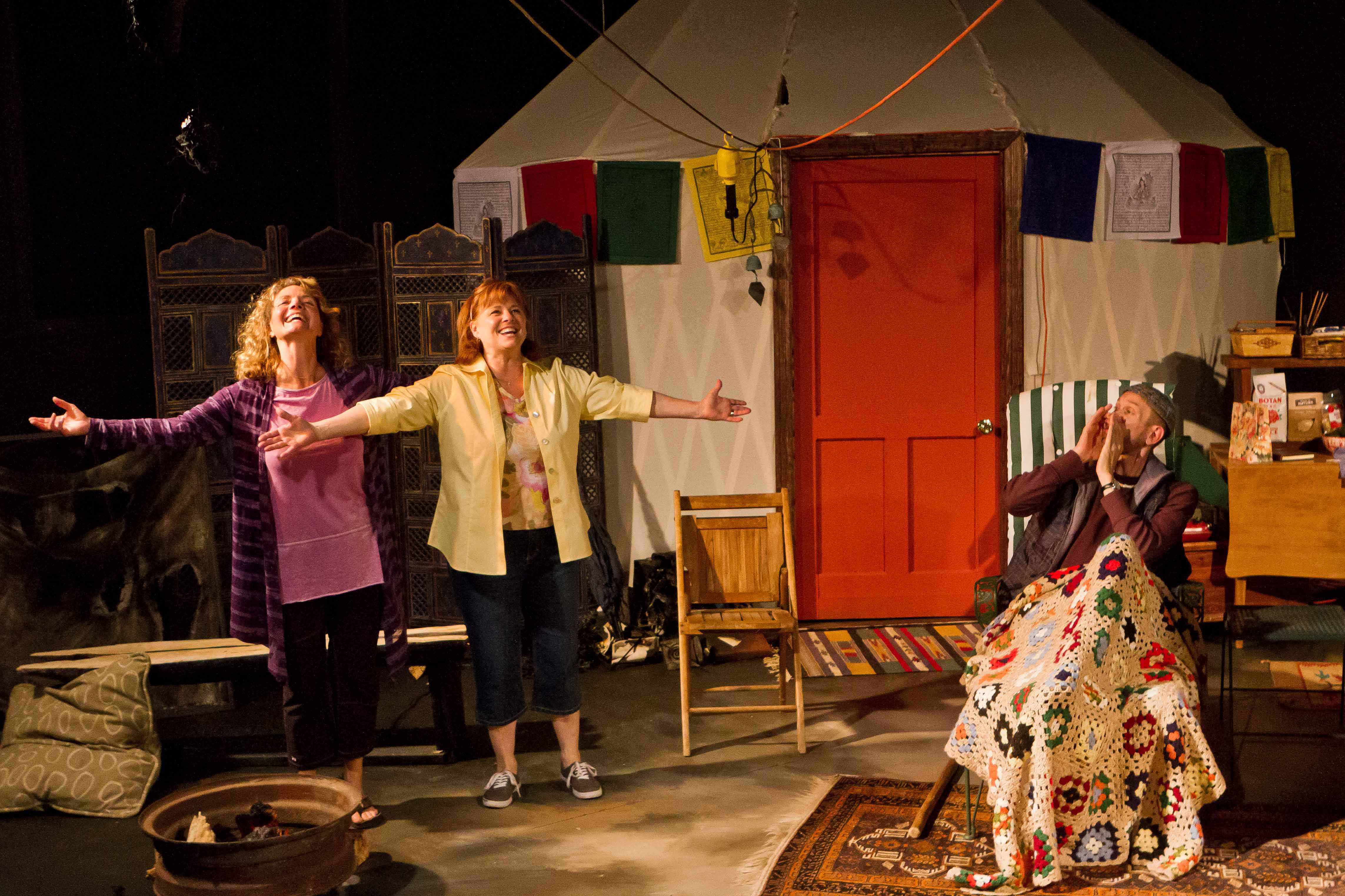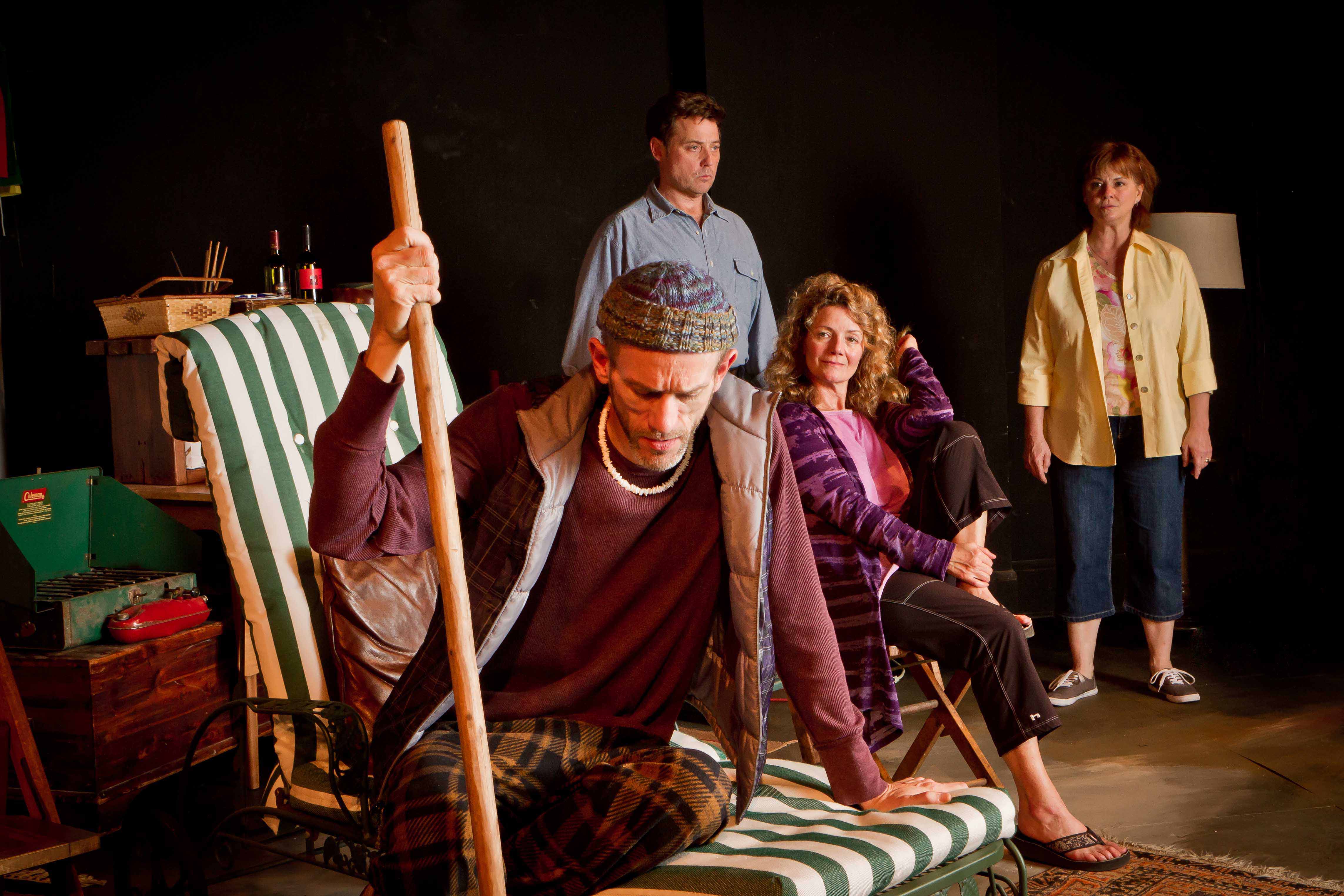 Bill and Dinah cannot understand how at ease their relatives are with all the pain and suffering in their lives. While the are sympathetic to their needs, it soon turns into rage as Neil declares that he is planning to stop treatment and die. It becomes even more  intense between the couples when Jeanette declares that she can’t handle living alone, so she is planning to go with her husband. Directed by Lia D. Mortensen on a very busy set(Henry Behel) that allows us to feel that we are indeed in a wide open area in Northern California. The new venue at The den ( one of several stages) is very intimate and designed so that all of the 60 or so audience members can see all the action. The lighting (Andrew Vanderbye) and sound (Melissa Schlesinger) add to the realism and Jon Buranosky has assembled some incredible props.