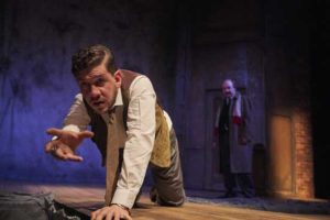 \He goes to a vacant theater where he meets with hired actor The Actor ( this character is deftly handled by Adam Wesley Brown) to help bring this story to light. The story is set in an isolated mansion that appears abandoned and within its wall are secrets. Kipps, a lawyer has encountered horrific visions in the house, that he finds unexplainable. The area surrounded by water ( marshes) and filled with winds and noises is one that might put the fear into the audience members. It appears that our Lawyer, Kipps cannot explain them so he feels that The Actor will help him to understand and get to the bottom of the haunting that he feels is in this mansion.