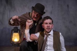 There are some very scary moments and from time to time, you might find yourself jumping a bit. Oh, yes! There is indeed a “Woman in Black”. Or is there? We see her and the Actor sees her, changing his attitude about the reality of what he is being paid to do. Since this is a mystery and a very well put together one, I will not give away any of what transpires, but will tell you that if you are into mysteries, make sure you get to The royal George for this one. It is “brilliant” with two solid actors, great direction and overall technically perfect.