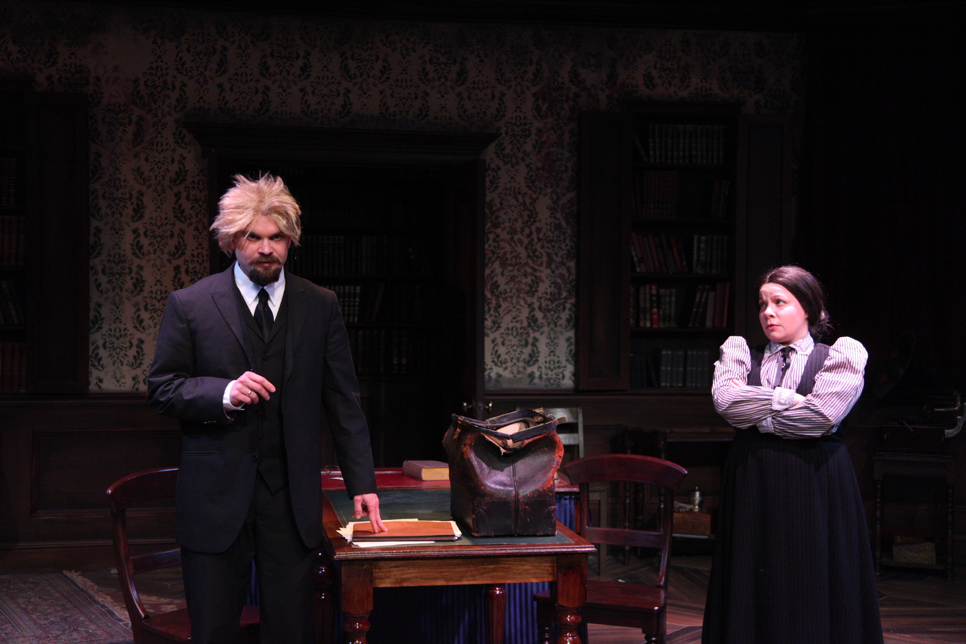 The others in this brilliant, “must see” production are Scott Olson (an incredible Bennett), Jodi Kingsley (Nadya), Meg Warner (an adorable Cecily, the librarian) and Kelsey Brennan (Gwendolen). Ms Brennan and Warner have a scene that will have you rhyming in laughter. Each and every one of these actors brings a special something to the characters they are playing and allows the story to gel. Stoppard has a gem of a comedy, where even if you had never heard of the names and people (all real of course), you will “get” the tale. It is suggested that you have a small understanding of the works of Oscar Wilde, in particular “The Importance of Being Earnest”. That would help, but the young lady sitting next to me, didn’t and still had a blast.