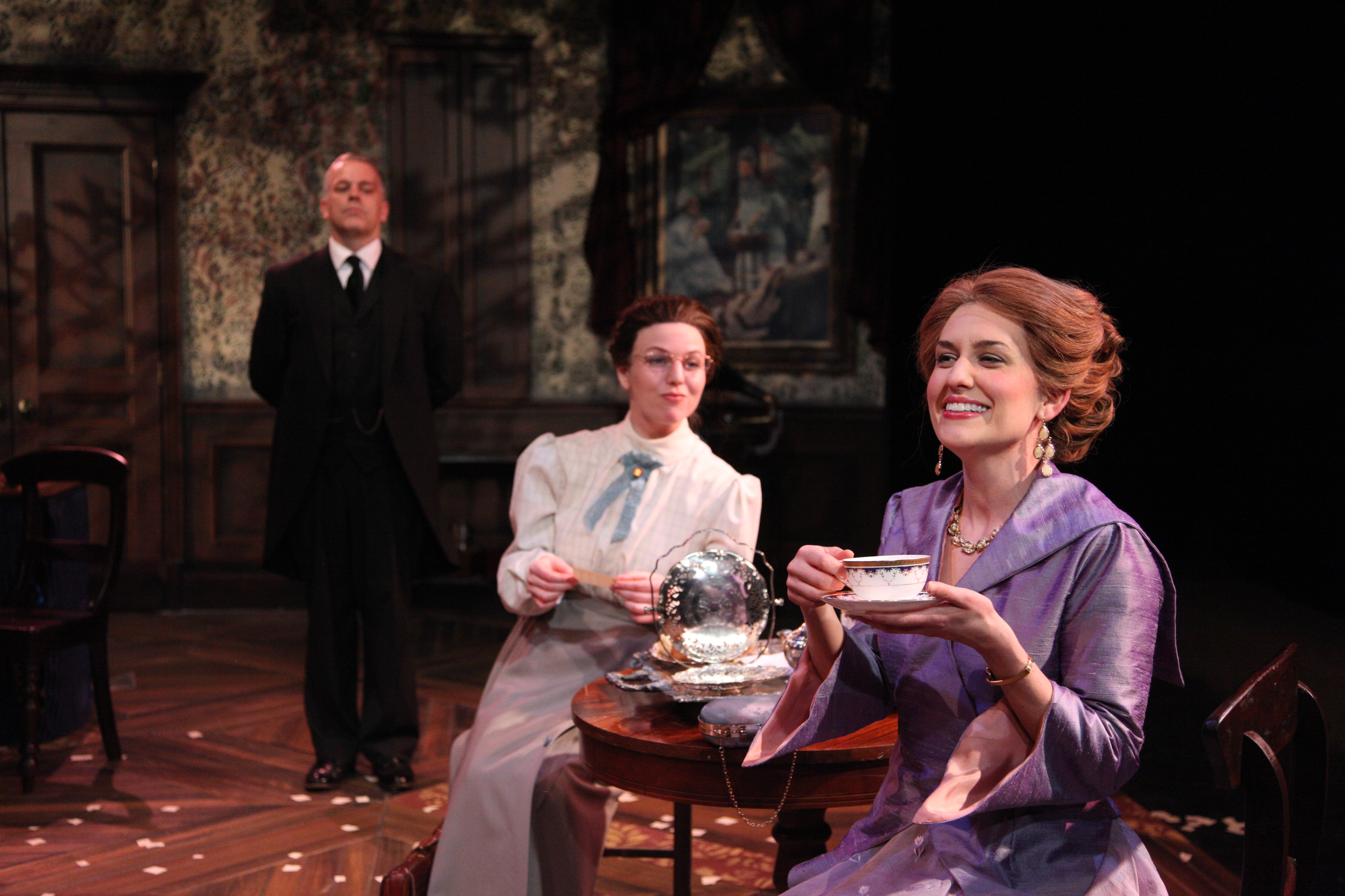 Under the skillful eye of director Nick Sandys, who truly understands the amazing way that Stoppard weaves his story into poetry, limericks, and theater, on a cleverly designed set (Joe Schermoly), one scarcely realizes that this production (with one intermission) is close to three hours in length. In fact, most of the audience could not care less as they laughed the evening away watching the events of the evening as our “hero”, Henry Carr takes us on a journey to discover meaning and purpose in life. Are we not all entitled to our “15 minutes of fame”? That is a question that comes into play as well.