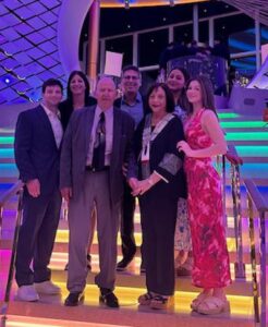 This year, my grandkids asked Jane and I to join them on their winter trip, a cruise on the “Icon of the Sea”, the newest , and might I say, largest , of the ships owned and operated by Royal Caribbean Cruises, Ltd.. As this was to be over the Christmas holiday ( with all three of the grandkids on break) all I had to do is find a replacement for my Santa duty on Christmas Day at St. James Church. I was able to do this and my co-host on WCPT, Frank took charge of all the other helpers needed for that day. Jane and I started taking pills to build resistance about a week before the trip. We also ordered “The Patch” that you place on your neck every three days. For some reason, this settles your body and you do not get seasick. It worked!!!!