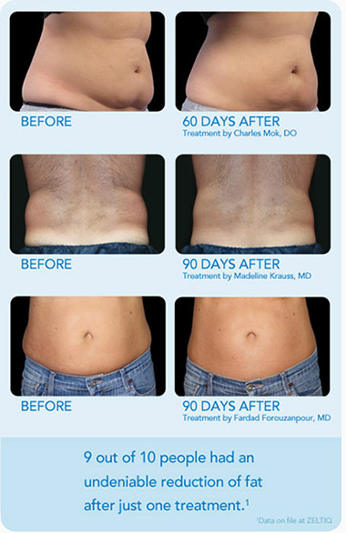 CoolSculpting® is a revolutionary non-surgical contouring treatment that freezes stubborn fat, which then is naturally eliminated from your body. No needles, no special diets, no supplements, no surgery. And most importantly, no downtime. The cost depends on the number of procedures and they do have programs that will allow for easier terms.
