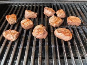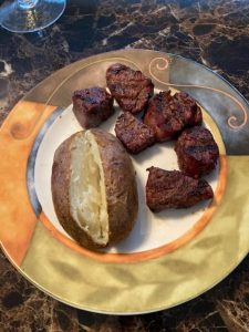While they are small, the are also tall, so the trick to doing a filet is the constant turning. This allows the juices to flow, the inside to cook and yet not burn. The ten steaks took about 25 minutes ( while our potatoes were being done in an air-fryer) and were perfect.