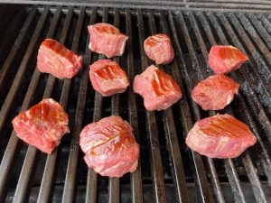 Under most circumstances, we would marinate for hours, but instead, we just added some seasoning, lit up the grill and went at it. Each packet contains five juicy tender filets. Please note there were ten total. Each one had some BBQ sauce, and each time they were turned, I continued to add sauce. We love “Sweet Ray’s” but any sauce will work.