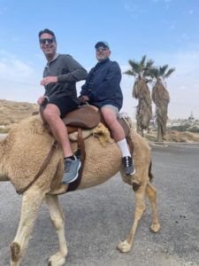 The next day we did the Camel ride, the Masada and the Dead Sea- talk about a day of learning and having experiences never considered in life ( at least for me). On Saturday we went to The Jordan Valley where we visited the ruins of a sixth century synagogue and I was able to stand on its stage and do a little song from, what else? “Fiddler on the Roof”. ( take note- I grew a beard on the trip so Tevye was easy).