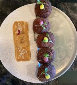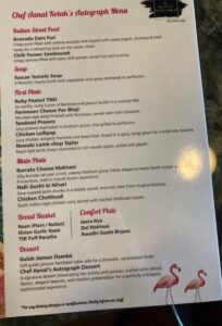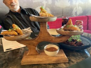 Kotak’s desire is to bring her artistry to the dining area and at the same time honor the tradition of her people and their culture, in a combination with the flavors that they love. Ours was what we call a tasting menu, designed to allow us a chance to try items that we might never order for ourselves. Jane and I were accompanied by friends Alan and Vickie, who have joined us on several dining features over the years. Here we were , four adults, none of whom truly went out of their way to go to an Indian restaurant, eating items we might never have experiences, and having a delightful experience.