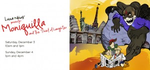Luna Negra Dance Theater is launching a new program-“Luna Ninos” a dance experience designed for the entire family. Their first production in this new series,”Moniquilla and The Thief of Laughter” will take place at Stage 773, located at 1225 West Belmont for four performances, Saturday,December 3rd at 10 a.m. and 1 p.m. and Sundays,December 4th at 1 and 4 p.m.. Tickets are only $15 and can be purchased by calling 773-327-5252 or online at www.lunanegra.org.