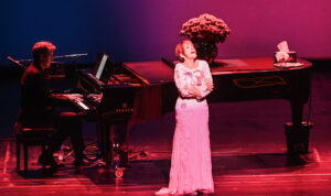LuPone plays the people in the front row and has a lot of fun as she tells us stories dealing with love, mysteries of the heart and her selection of songs Broadway and contemporary music intertwined with her stories is perfect. Music like “Being Alive”, “Hello Young Lovers” and many others all relate to the love she has experienced in her life.
