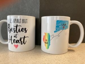I also had some mugs done for Julie and Lauri ( the Connecticut sister) showing that no matter how far apart they are geographically, they are always “together”. Now each time they do their morning coffee, they will think of each other ( and of me).