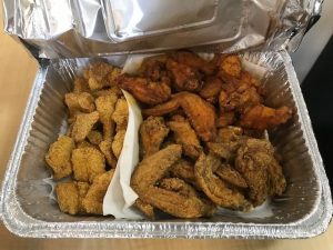 On today’s show, we were visited by  ms Vanetta Roy, who along with her brother is building a chain of casual seafood spots, not only in Chicago, but all over the United States ( and possibly more!). We will review the entire menu in the future, but today, we had a sampling of some of the very special items they prepare. Our food came from the Old Town location at 1143 N. Wells Street ( at Division) aka the start of Old Town. Frank and I along with our engineer and producer were able to sample the wings, the fried catfish ( they  were delicious), we also had “dirty rice” and “Collard Greens” ( I had never tasted them before- not spicy and very tasty). The last item was the fried biscuits ( an almost beignet, but far less heavy).