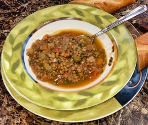 Highly Recommended **** From Fall til Spring, when the weather is from nippy to downright freezing, there is nothing as yummy as soup. Let’s face it, I love soup. In fact, during the winter months, I am just as happy with a pot of soup as I might be with a seven course dinner at one of the areas finest restaurants. I guess as a youngster, growing up in a Jewish home where Chicken soup was a standard ( it makes you feel good, like Jewish Penicillin), and my dad, made the best beef barley ever, I acquired the taste for soup. By the way, in the summer, I love a bowl of beet borsht with a lump of sour cream. Very soothing on a hot day. Back to the winter months.