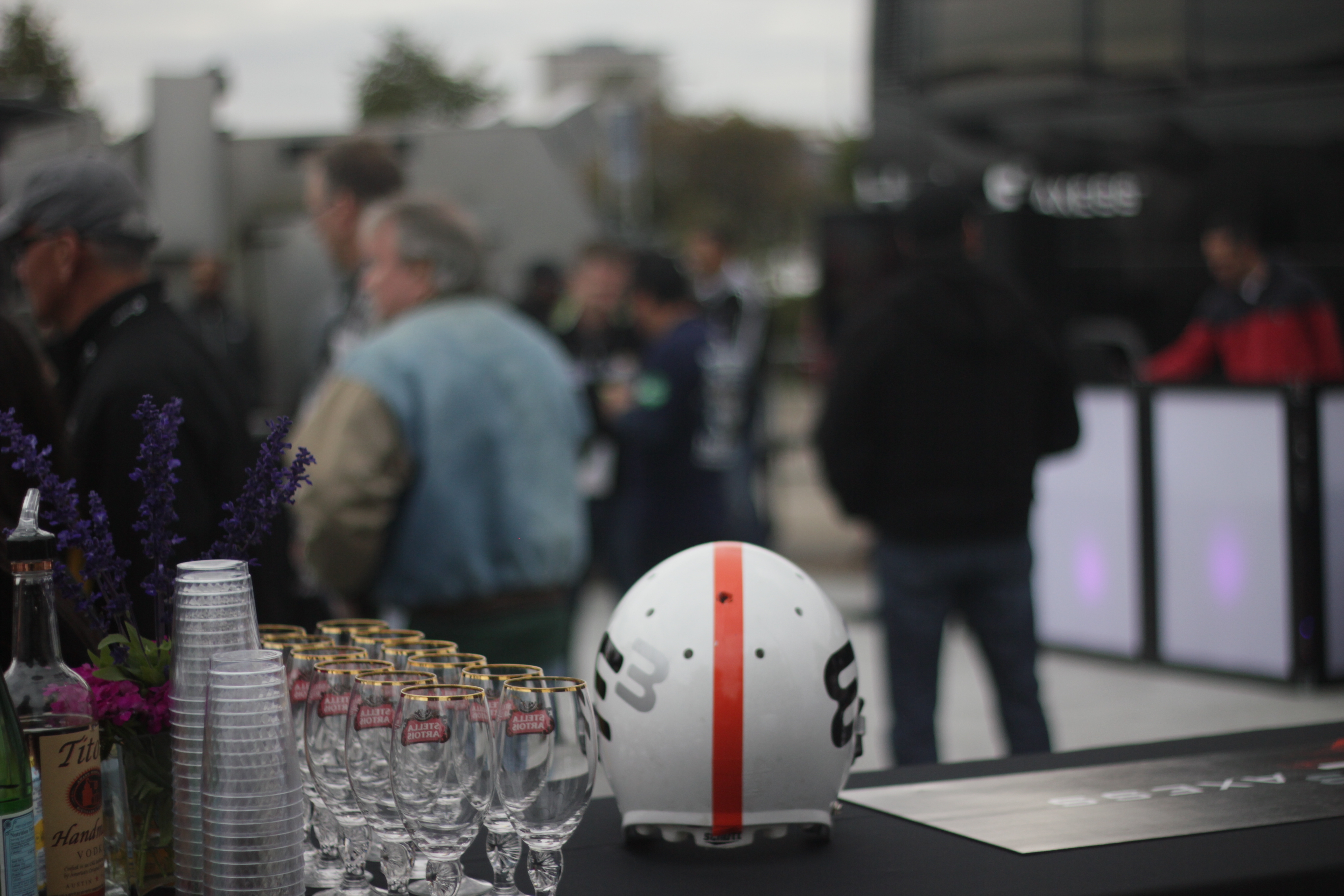 The tailgate experience was fantastic. A very pleasant surprise. In a sea of ” been there done that” tailgaters with cheap beer, and even cheaper food, was the E3 VIP carpeted oasis. When you arrive, you are instantly transported to the hottest club east of Soldier Field. The carpeted lounge and high tables make you forget that you are standing in a parking lot that usually plays host to tourists and boaters. Grab a delicious Bloody Mary or microbrew from the premium bar and enjoy the pre-game atmosphere. Servers are walking around constantly and offering up items such as freshly grilled BBQ shrimp, steak skewers, pork tenderloin sliders with a coleslaw topping, mini lamb shanks, chicken sausage, and the best mashed potatoes you can ever want.