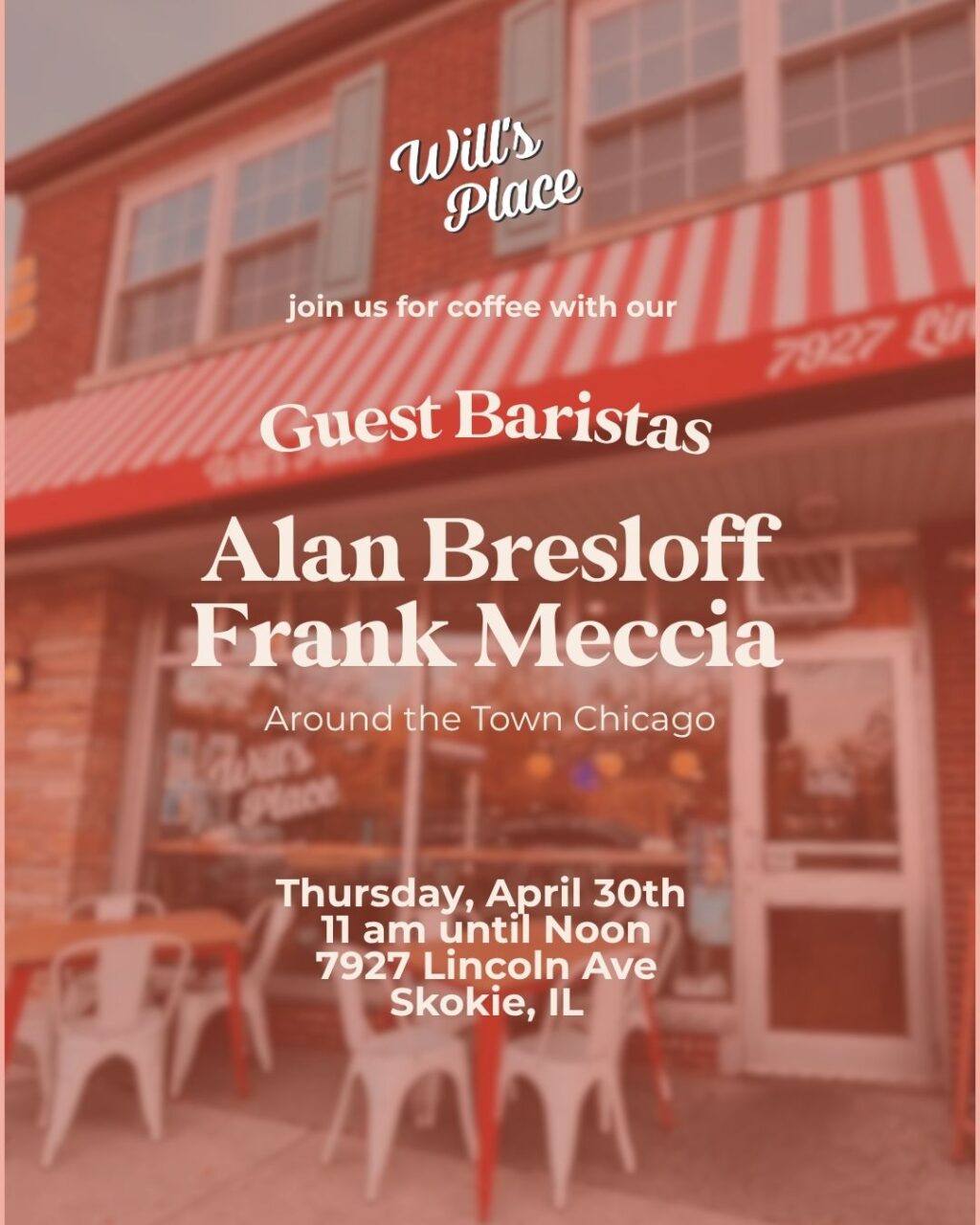 On Thursday, April 30th, you can come to Will’s Place in Skokie and meet ( and greet ) your hosts from Around The Town with Al Bresloff on WCPT820 am radio.