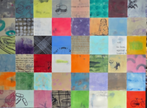 Wax Poetic is an exhibit best viewed in person. The nature of encaustic co-mingles elements of painting and sculpture. To view in person is the only way to grasp the depth, surface and luminosity that no other medium can achieve. The artwork’s physical aspect is equally intriguing as their content, for example, Ross’s word paintings use small bites of conversations, thoughts and lyrics on the wood as text, visual language layers with patterns.