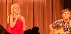 I came for the show, and boy , oh boy, did I get a show! Three fantastic talents, all doing their “thing”, which is telling their stories with music and conversation. The three ladies were Lynn Nardelli, who I had never heard before. Based on her story, she was a late bloomer when it came to “telling her story thru music”. Her voice is powerful and with Shawn McKenzie at her side they did a great set. Songs like “Inspire My Life” and her own “Demon” as well as “Don’t You Forget Me”, got the evening off to a great start. As she ended her set, she was joined by Natalie Myre Hart ( who put the evening together) for a duet.