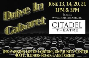 [rating=4] What can a theater company do to please an audience when they cannot open their theater? This has been the longest period of “no theater” in my lifetime. Today, Jane and I had an enjoyable escape from watching the latest Net-Flix or Hula series. We went to a “drive-In Cabaret” performance in Lake Forest. Yes! Citadel Theatre Company is presenting a very special afternoon of “drive-In Cabaret” at the Gorton Center’s parking lot in Lake Forest. The show is about 45 minutes and features many of their performers ( both recent and past as well as some new-comers) doing  their performances on a platform stage with sound/music coming from equipment ( handled by Bob Boxer) and transmitted to our car radio so that we can remain in the safety of our cars while enjoying an hour of great performances.