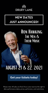 Highly Recommended ***** Thanks Drury Lane! I guess if you are going to re-open your theater, why not have a myriad of great singers and songwriters do so! But, because we are just coming out of a pandemic, why not have one man bring all this music to the stage? Great idea, Drury Lane! Who better than Ron Hawking to bring this idea to fruition!