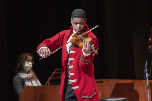 “The Chevalier” is clearly a work-in-progress. The underlying biography is amazing. The incorporation of Saint-Georges’ instrumental music is exceptional, and Elliott’s violin playing is extraordinary. Despite the wonderfully creative concept behind the production and the delightful acting on the part of the performers, the production as a whole can certainly be improved. Sure enough, we learn from Barclay during the aftertalk that he is seeking out additional funding so as to revamp the concert into more of a play that tells Saint-Georges’ story at length. If that’s the direction that the show is going, then it needs to flow better with less narration, and the story ought to be better focused. The result should look somewhat more like an opera but with dialogue and no singing, backed by instrumentals, as compared to the current situation where actors step in front of the orchestra to say their lines and then sit on stools when they are not being featured. Yet in my opinion, a revised script might be better suited to a movie than a play. Visual effects can allow for the overlay of the violinist with the actor playing Saint-Georges. And unlike the limitations of a live stage presentation, a larger portion of the life story could be shown rather than merely told. Consequently, the audience won’t have to do so much heavy lifting.