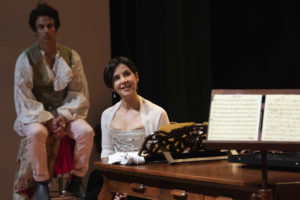 The show not only devolves into a history lesson but also a lesson in musical composition that can best be understood by those already familiar with baroque music or who have some understanding of how instrumental music is put together. While I learned something from these explanations, my feeling is that this goes over the heads of most people in a general audience who have not had the luxury of a music education. Hence the larger questions become: Who exactly is meant to be in the audience? And how do the discussions between Mozart, Marie Antoinette, and Saint-Georges about the intricacies of music further the overall plot?