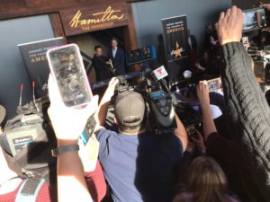 The press and dignitaries. on this sunny bright day were able to enjoy a press conference that featured the creator of “Hamilton”, Lin-Manuel Miranda, the Exhibition Creative Director, David Korrins and “Hamilton” producer Jeffrey Seller. They cut the ribbon at 5:30 p.m. and we also heard from Mayor-Elect, Lightfoot. The building was filled with dignitaries and every television station was there covering this momentous event. Once the ceremonial part was over, we were invited to relax and have some snacks as the first groups entered the amazing and powerful exhibit. Al Roker, who is joining the cast ,was also in attendance.