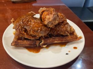 - Chicken & Waffles (original or Nashville-style) using farm-raised poultry from Harrison’s in Glenview XXX