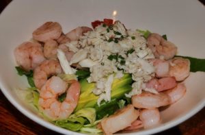 For our entree’s we decided to do the things that are popular: The Key West salad: fresh lump crab meat and shrimp, avocados, tomatoes, crisp greens, chives tossed in a lemon vinaigrette. They split it for us into two bowls and all four of us were able to partake from one salad. Again, this menu is easy to share allowing each diner to gather the flavors assembled by the kitchen at Bluegrass. The others were the Crawfish Etouffee ( crawfish smothered in the classic sauce of seafood stock and roux), The Jambalaya ( a classic of Andouille and chicken slow simmered with spices and peppers and you can add shrimp to complete the dish) and just to show America that we care, one of my favorite items anywhere, the Bluegrass Burger (certified Angus beef, 1/2 pound with some great fries. We also did some other sides Corn Pudding and smoked cheddar grits. There are so many other choices that we figured if we came every day for two weeks, never ordering exactly the same, we might get to try it all.