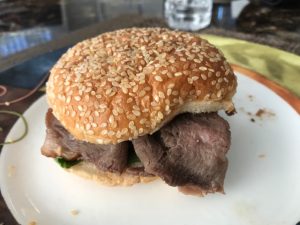 Herb Brick Chicken ( three meaty pieces of chicken with red potatoes/mashed and green beans). This box, as all packages had full instructions on how to either “nuke” or bake and use all the items that came with ( sauces etc).. Included in our sample box was a lobster roll. Again, complete instructions on the preparation of this wonderful item. If you are a lobster lover, you will find this as good as anything you might enjoy in Maine.