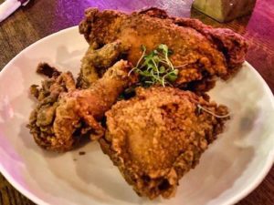 For our entrees, we chose the Fried Chicken ( large platter) , four wonderful pieces of juicy chicken fried to perfection. The second choice the Jerk Rib Tips ( tender pieces of pork simmered down that melt in your mouth). The seasonings used to marinate are what makes this so special and tasty ( and yes, there is a kick!) and the third choice the curry GF, a popular dish in the islands. There is something special about the Jamaican curry blended with thyme, allspice and island spices- loved the flavor.