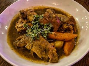 [rating=4]If you like Jamaican cuisine, but can’t travel, take a trip up to Evanston ( just at the border) and you will find Good To Go Jamaican Cuisine. This restaurant is just a few doors East of Theo Ubique Theatre and we found this spot thanks to Dr. Paul Lisnek at the last opening. We had a slight taste trying just the jerk chicken ( and loving it) so tonight we went back for a menu sampling. Frank, Jane and I arrived as they were prepping for a private party ( they also have live entertainment on weekends). Our server Jeanette was quite knowledgeable about the menu ( they have two). Since Covid, they do not have a paper menu but as many other restaurants, a code that allows you to copy the menu to your phone. I miss the printed page.