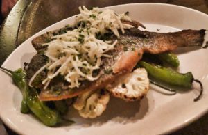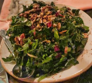 call these the Found Fruit Soda- smooth and tasty. We shared a Kale Salad (kale, swiss chard, dried cranberries, candies nuts and a cranberry vinaigrette sauce) that was more than ample for us to share. We also enjoyed their Deviled Eggs ( three halves and divine- being the birthday boy, I ate two). FYI- they have a great “bites” menu and several other salads & veggie dishes to choose from.