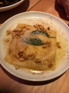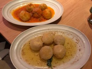For our entrees we selected pastas and Tuscan Vegetables. The menu does include a number of fish plates along with chicken and meats. The Tuscan grilled Ribeye will be on our next visit ( for sure) as we saw one being delivered and it appeared to be a masterpiece. Our dinners included a very special item, Gnudi and we enjoyed these with both of the sauces,brown butter and basil marinara, Gnudi in translation is “naked Ravioli”, so these dumplings composed of Pecorino and Ricotta cheeses are dropped in a semolina flour and cooked as if they were ravioli, but without the dough. They are called a “cheese explosion in your mouth” and they were “to die for”!