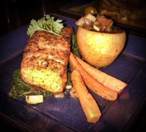 • Crusted Salmon: with carrot Freekeh, persimmon upland cress & light rouge