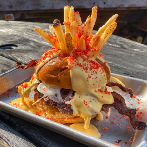 We ended up doing the pulled pork, the Oklahoma Onion Burger and an order to their Giant Cornbread ( which it turned out, they were indeed out of) and a side order of Mac ‘n cheese ( a delight).