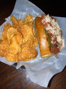 Shrimp Po Boy ( another shrimp menu items with great fixins and a sauce that makes one think New Orleans. Our second choice, an amazing The Fellas sandwich ( beef and pork meatballs) and then their special New England Lobster Roll ( with a very special seasoning) and the fourth item,the Carmeta (grilled chicken with bacon, avocado, provolone cheese, lettuce, mayo served on a special roll). By the way, all of the rolls were as fresh as I had ever tasted, making each a perfect sandwich. There are many more to choose from ( I watched other tables being served beautiful burgers and pizza that looked delicious) making it easy to return and try other menu items.