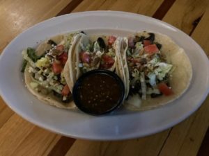 The shroom- mushroom tacos were divine- charred oyster mushrooms, roasted tomatoes, toasted papitas, spicy chimichurrim arugula, on a corn tortilla- terrific and as you know, mushrooms are not high on my list) Tasty!