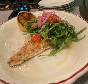 Jane and Frank enjoyed one of the many wines they have on their wine list, while I had my usual Vodka Martini, very dry, straight up, with a rocks glass on the side.This was done to perfection, and while it might seem “petty” is shows just how customer service orientated a space is when they get it right ( twice)!