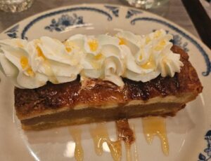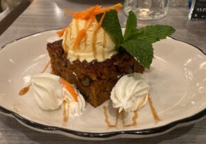 Carrot Cake (walnut, orange zest, with a cream cheese frosting) and Parrish Pie ( cookie butter cream cheese, spiced butter, whipped cream and honey)- delish!