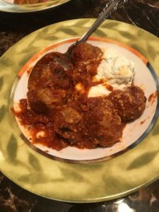 For the kids: a Spaghetti and meatball dinner, chicken tenders and of course sliders (cheeseburgers or sans cheese).
