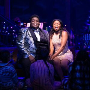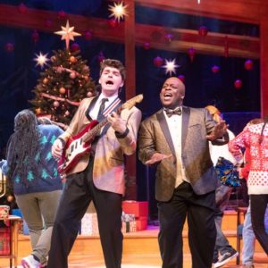 In short, we both loved the show. We were excited from the moment we stepped into the Cabot Theatre and saw the stage set for a cozy holiday party. I immediately thought the scene looked a little like the holiday living room set in Walt Disney’s Carousel of Progress. Turns out, a 14-year-old with a smartphone is a pretty decent and quick fact checker and it only kinda looks like the scene from the iconic Walt Disney World attraction. Still, it was beautiful, warm, and welcoming.