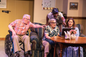 It turns out that the cookies baked by Peg are pure delights and change the lifestyle of the residents of Placid Pines. As the play continues, and they eat more cookies, they seem to be livelier and more alert. While this is a tale of sex, drugs and rocking chairs, I found it to be a play about the inner self of each of our characters. They may not recall their entire history and they do not know what their future will bring, but as long as they wake each morning, they are going to enjoy the day and make the most of what they have been given!