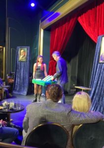 Have you not heard of Chicago Magic Lounge? It is the best kept secret out there, but if you are into magic, both tableside and onstage, it is the place to be. Located in the back of what appears to be a laundomat on North Clark Street in Andersonville, it is a triple threat for magic lovers. There is the Chicago bar magic, where while you are in the waiting area of the actual theater, you can enjoy a cocktail and witness a magician doing bar magic ( this was started in Chicago many years ago). After awhile, you are invited into the “library” where you see some of the many artifacts of magic history and then as the walls open, you move into the amazing Cabaret Venue where you see the stage and the levels of seating that make every seat one where all the action can be seen.
