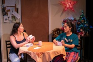 This is an unusual production , sharply directed by Ana Valazquez and is in fact part of the Destinos program celebrating its 5th year in Chicago. The running time is 70 minutes and is “real time”. In other words, there is only one actual scene on this very special night in the life of Alma ( deftly handled by Jazmin Corona) and her daughter, Angel ( Bryanna Ciera Colon is terrific). Alma had crossed the border 17 years earlier and had started her search for her American Dream. Her daughter was to be a part of this dream.