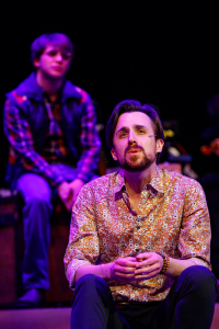 In reality this is almost a concert with his bio being presented along with his music. The concept by Harold Thau is not that unique, but the presentation directed by Linda Fortunato is easy to follow as we learn a great deal about the man and his music . There are five performers with Steven Romero Schaeffer ( who some might remember from TATC’s “Big River”) taking on the “identity” of Denver. He has the look and feel but never tried to imitate Denver. The other cast members are Sara Geist, a new comer to the Munster stage, Tommy Malouf ( recently he was here for “Million Dollar Quartet”, Andrew Mueller ( making his TATC debut) and Shannon McEldowney ( previously in “The Pajama Game”).