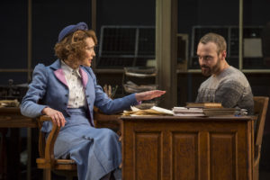 The story becomes a battle of two strong men and their opinions as to what might be best for the community and the people. Ibsen, in writing this tale was using his pen to attack the political system, the government, middle class society, marriage and family ties. In a way, this play was his revenge for the way critics had panned and ,as he felt, misunderstood his previous works. The direction by Falls is as perfect as one might see a play that is almost 2 1/2 hours long. The cast of players, some of Chicago’s most notable ( some taking on smaller roles) is powerful. In the next to the last scene, at the Town Hall meeting, Larry Neumann, Jr. is hysterical as the town drunk , and Allen Gilmore shines as Aslaken, the head of the Small Business Association. Aubrey Deeker Hernandez is Hovstad, the editor of the town newspaper, who rolls with the political punches and his associate Billing ( Jesse Bhamrah) are both “Pro and Con” on the subject.