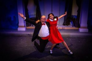 Warbuck’s secretary, Grace Farrell is played to perfection by Chamaya Moody. It is her job to bring Annie home and rescue her from her “Hard Knock Life”. There is also something going on between her and her boss. Annie wants to find her parents who she is sure plan to come back for her. Warbucks falls in love with having a child in his home and wants to adopt her, but because of her faith and hope, he  takes all the steps needed to find her parents. Hannigans brother, Rooster(Kyle Ryan hits the nail with his interpretation) and his girlfriend, Lily St. Regis ( well played by Becca Duff) are going to pretend they are the parents, claim the reward , and get out of town.