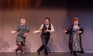 If you know the story, “Annie” is about an orphan who seeks finding her parents and getting away from the lady who runs the orphanage workhouse ( this was during the Great Depression). This character is played by the adorable Elin Joy Seiler, a natural redhead ( but no perm in this one), and her “keeper” Miss Hannigan is played by Sarah Smith, BUT tonight the role was handled to perfection by Allison Rose MacKnick who was flawless. Her scenes with the orphans and with her brother, Rooster (David Geinosky) are terrific. “Rooster” is a con-man, who along with his girlfriend Lily St. Regis (deftly handled by Emily Holland) try to convince Daddy Warbucks ( a stellar performance by Michael Metcalf) and his assistant, Grace Farrell (Desiree Gonzalez) that they are the parents that left Annie in New York, and hae come back for the $50,000 reward. Mine you this was a time when $50,000 was truly a lot of money.